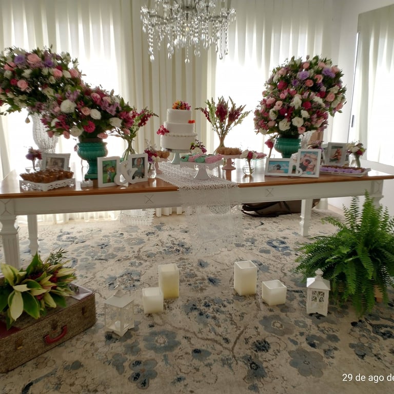 Aqui, cada foto é mais do que uma imagem, é uma celebração do amor as flores e da arte. Cada mesa de bolo que já criamos é um testemunho da nossa paixão pela decoração e do nosso compromisso em transformar cada evento em uma ocasião inesquecível.